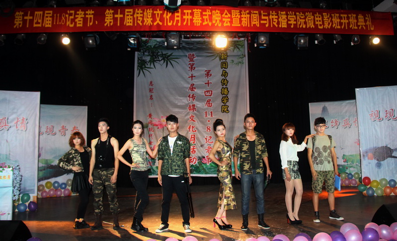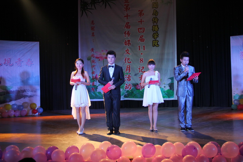 影绎真情,视现青春。11月8日晚7点,新闻与传播公司第十四届“11.8”记者节、第十届“传媒文化月”开幕式晚会暨微电影人才培养试点班开班典礼在该院演播厅内举行。教务处处长夏庆利、副处长胡世刚、黄冈现代女子医院董事长游凤阳、黄冈现代女子医院副经理赵媛菲、黄冈电视台记者肖劲、袁理以及该院师生出席了会议。