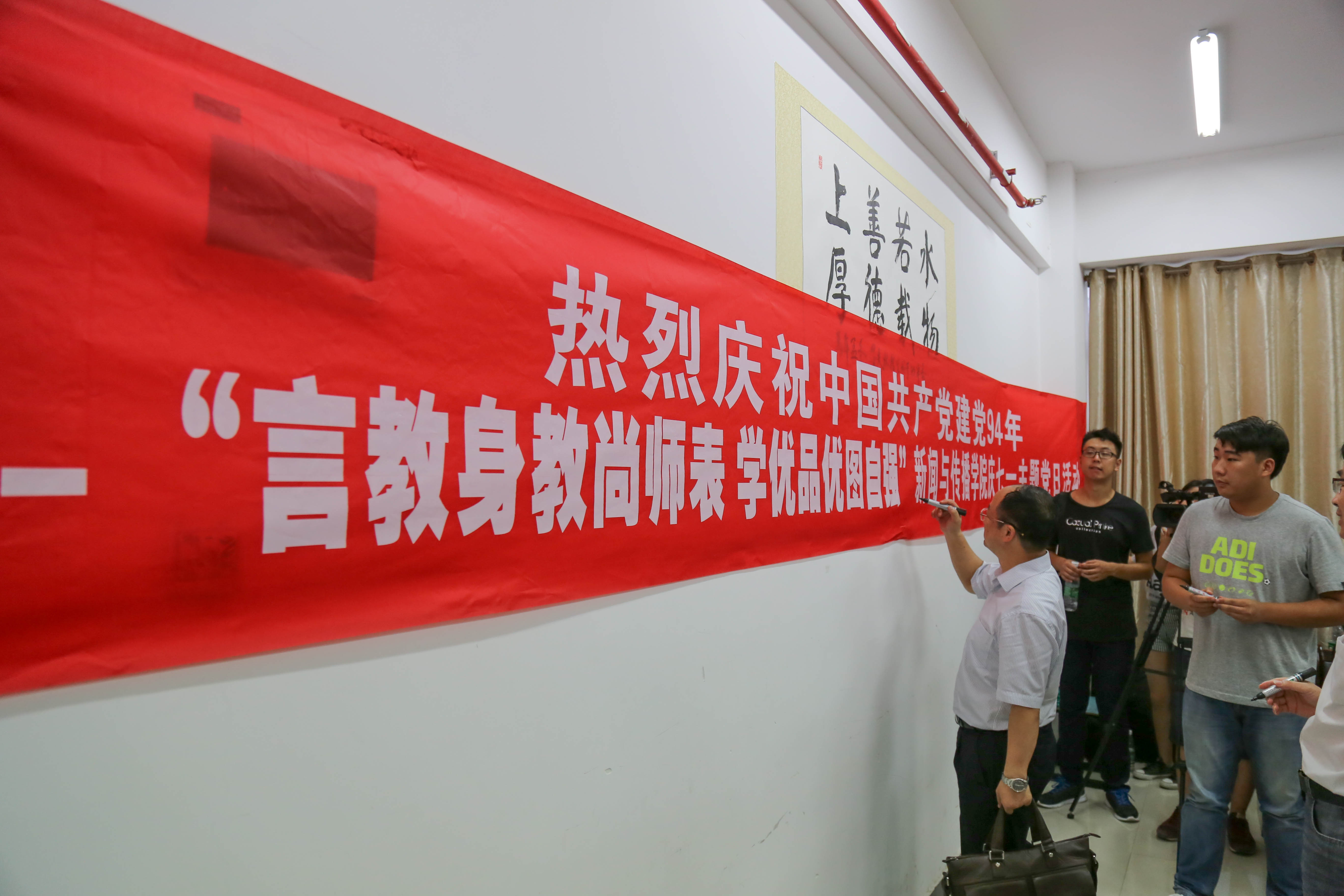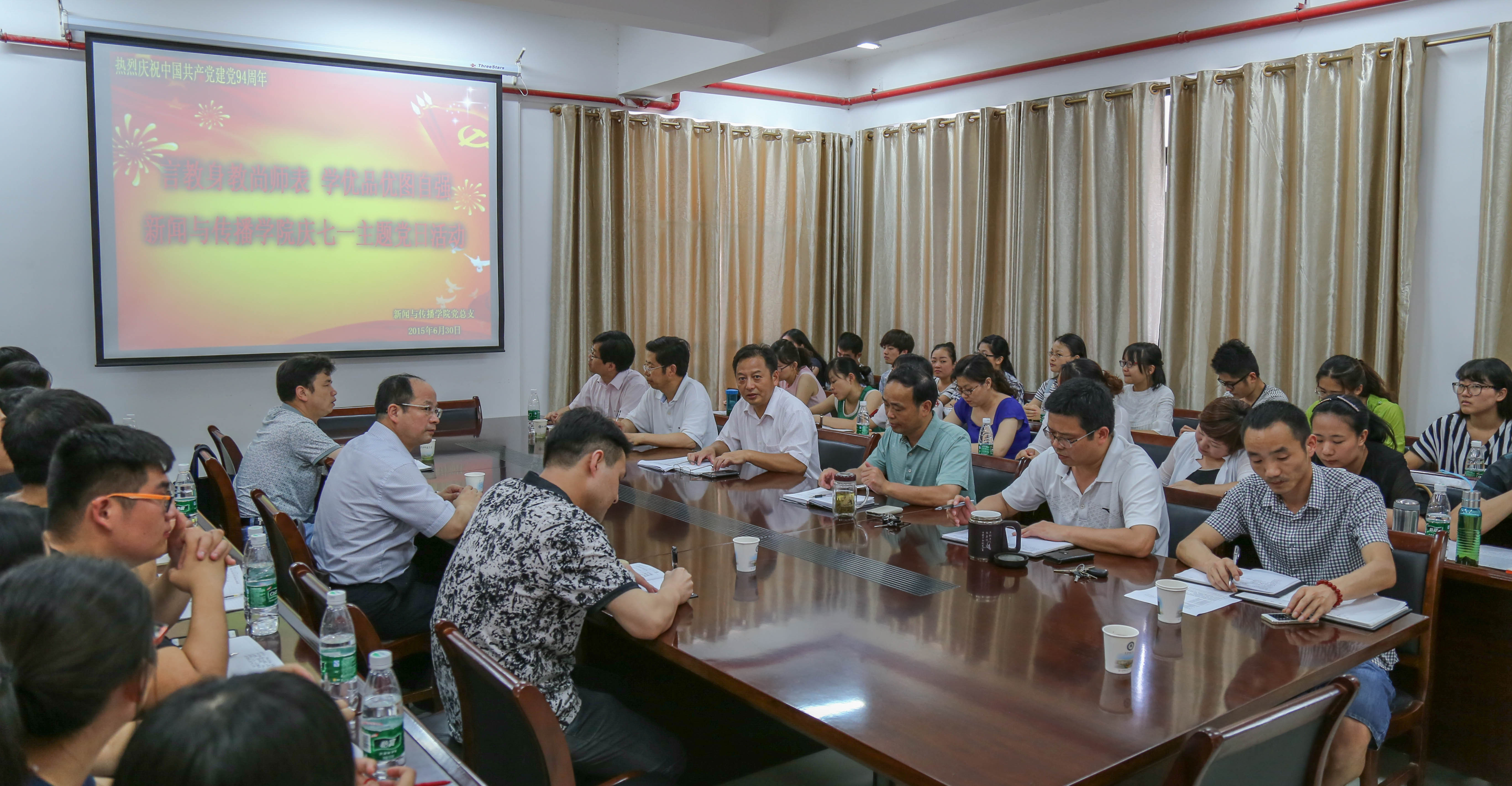 为纪念中国共产党建党94周年,进一步激发师生党员的荣誉感、责任感和使命感,永葆党员先进性,以实际行动扎实推进“三严三实”专题教育,6月30日,新闻与传播公司党总支举办了以“言教身教尚师表,学优品优图自强”为主题的“庆七一”党日活动。公司党委副书记、纪委书记李金奇、公司党委常委、组织部部长、统战部部长王锋、公司党委委员、宣传部部长宋文生、公司党委委员、校工会常务副主席刘文初出席主题活动,活动由新闻与传播公司党总支书记杜建东主持,公司党政领导班子、教师党员代表和员工党员代表共50人参加了党日活动。