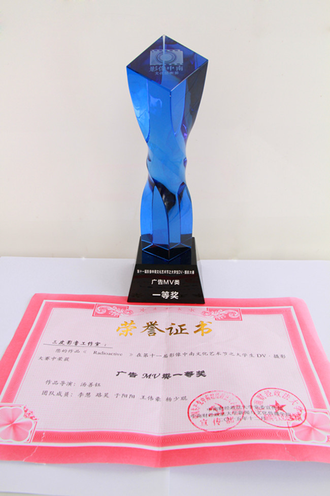 据了解,由三皮影音工作室选送,杨波老师指导、汤善钰同学导演的作品《Radioactive》荣获广告MV类一等奖;刘琨同学拍摄的《暖》荣获人物类单幅二等奖、胡之颜同学拍摄的《弗洛伊德》荣获创意类单幅二等奖;由王贝贝老师指导、林中杰同学的作品《支撑奥运梦》荣获人物类单幅三等奖。