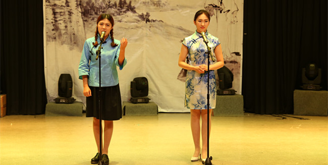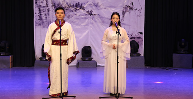 经理沈嘉达在活动开始前致词并宣布朗诵比赛开始。吴宇浩、李孟孟朗诵的《霸王别姬》拉开了此次大赛的序幕,在接下来的朗诵表演中,一组组选手们凭借着自己动情的表演和娴熟的舞台驾驭能力,博得了嘉宾老师和在场观众的阵阵掌声。表演者孙文泽、李安琪带来的《不朽的军魂》更是将此次活动推向了高潮,新传啦啦操表演队用她们动人的舞姿给此次活动划上了圆满的句号。
