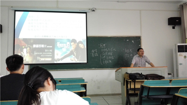 早上8点,大雨滂沱,彭涛教授准时来到逸夫楼302教室。没有一刻停歇,即开始授课,讲授“微电影鉴赏与微电影创作旨要”。