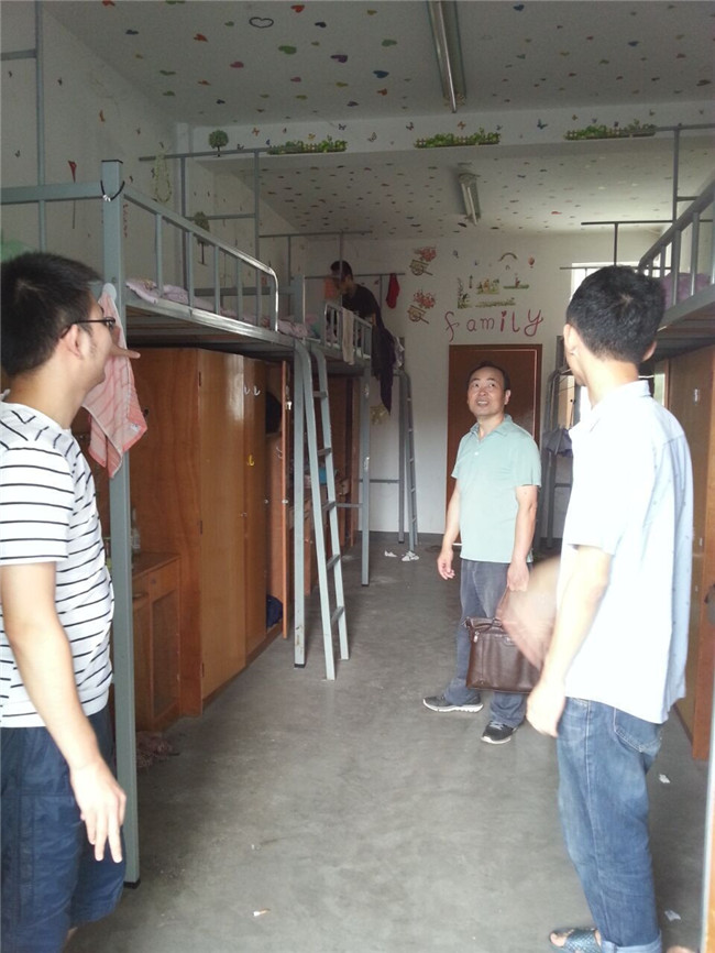 咱们新传有力量!暑期公司有微电影班、考研复习和暑期实习等各类滞留在校员工80余人,并分散在各楼栋多个寝室;辅导员、班主任利用微信、qq、电话等各种联系方式,提供员工即时方位,发布动态信息。副书记黄佑和冒雨涉水赶到员工宿舍,一间一间寝室紧急转移。