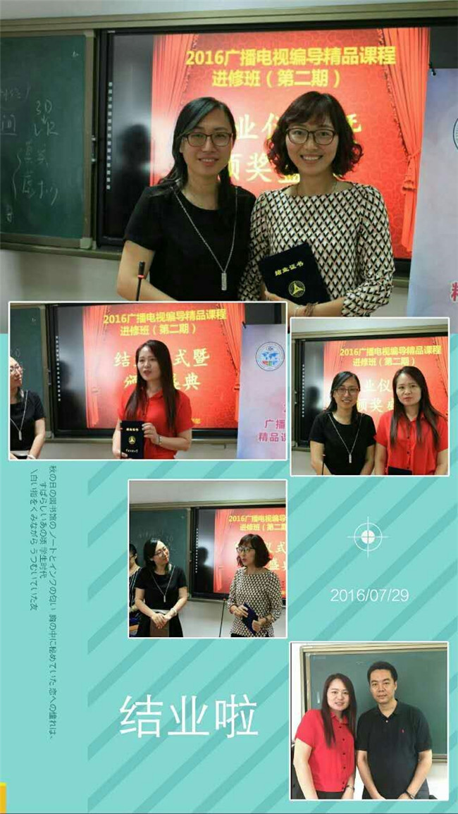 7月29日,伴随着结业仪式的音乐,10天的学习结束了。两位老师顺利结业同时收获颇多。不仅在名师的讲解中了解了前沿的行业动态,了解当今国内外电视传播的现状、环境,更让老师们深刻感受到全球化今天的中国在文化传播上的紧迫性和艰巨性。此次进修老师们在聆听中学习,在学习中思考,在思考中收获,在收获中提高。