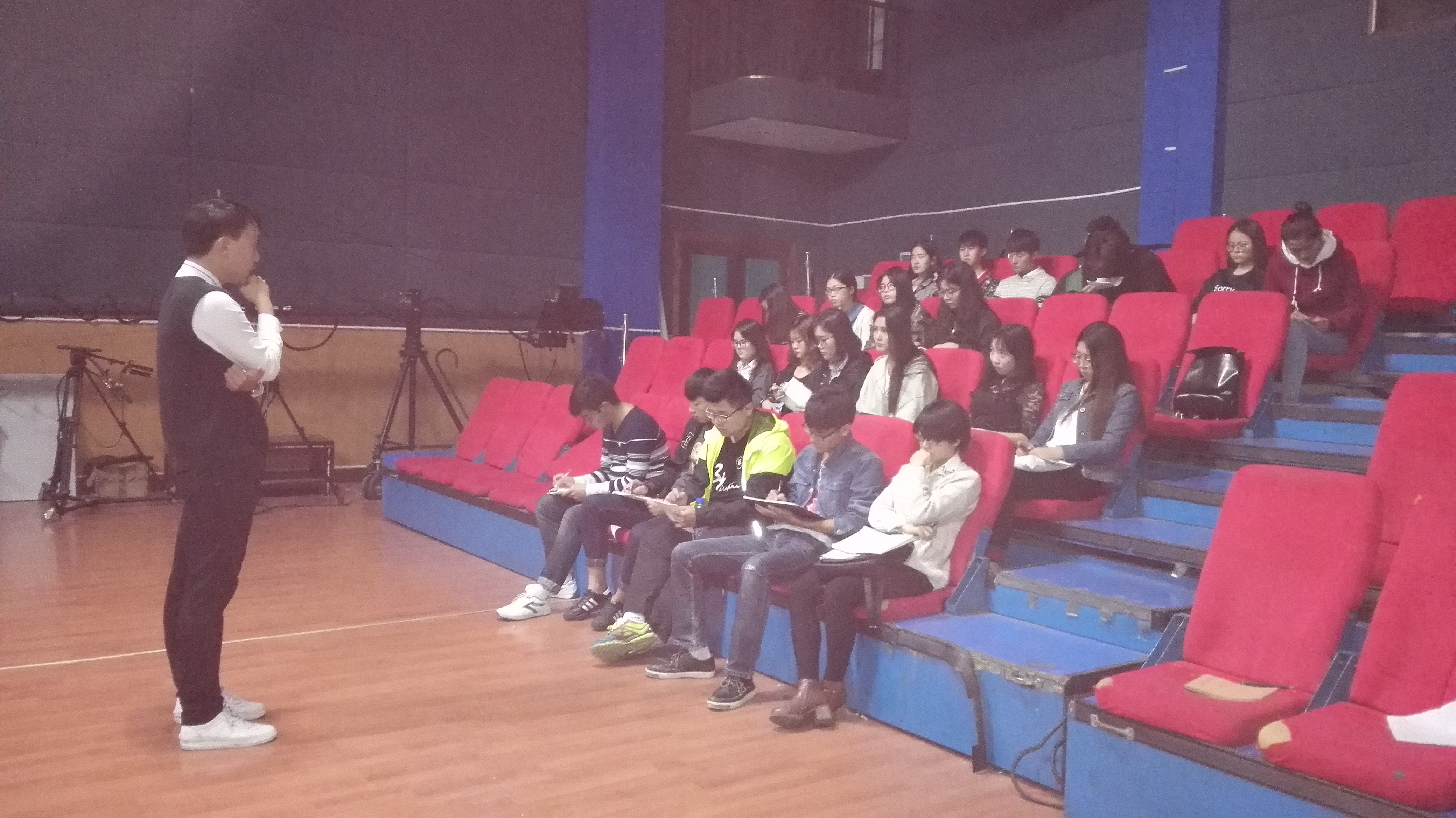 10月15、16日,上海东方电视台编导张瀚章应邀为公司“宏大”微电影班学子开展讲座,讲授微电影剧本创作的技巧。本次讲座主要涉及微电影剧本创作的情感与语言两项内容。