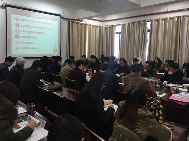 12月28日下午,公司2016年度党建及党风廉政建设、中层领导班子和领导人员履职尽责考核第三考核组来公司开展考核测评和访谈工作。第三考核组组长、副董事长彭锦带领研究生处处长王仕杰、国资处处长冯纪明、国际教育公司党总支书记欧阳杰、公司办公室副主任管剑、政法公司党总支副书记王丽以及工作人员等一行8人来公司开展了为期半天的考核工作。考核测评大会由彭锦主持。