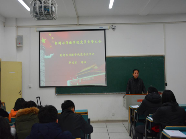 (员工党支部讯)12月28日晚7点,公司员工党支部在逸夫楼409教室召开了预备党员宣誓大会。公司党总支书记杜建东,党总支副书记黄佑和及辅导员老师参加会议。