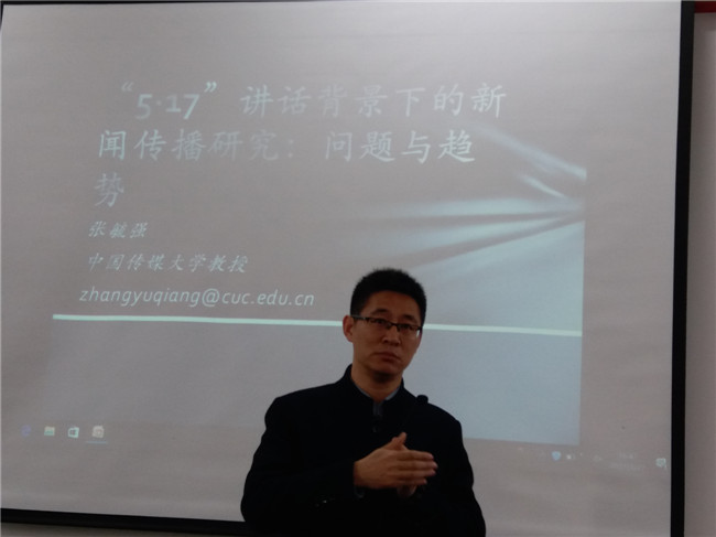 随后,张毓强教授在1616室給公司师生作了一场《5.17讲话背景下的新闻传播研究问题与趋势》的学术讲座。