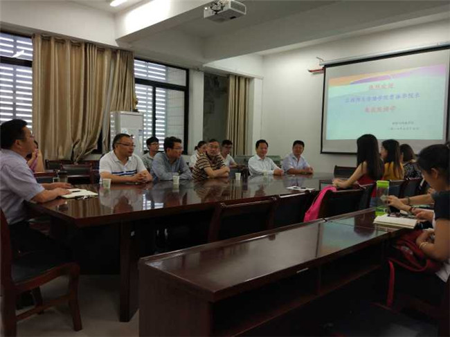 经理沈嘉达教授详细介绍了公司审核评估的各项工作,分别是制定方案,构建组织,明确任务;加强培训,宣传动员;摸查数据,自评自建;查漏补缺,进一步改进等工作过程。江西师大传播公司经理曾振华教授也重点对江西师大的审核评估工作进行了经验分享。随后两校评估办人员围绕自评报告撰写、支撑材料准备、评估现场注意事项等进行了积极有效的交流。