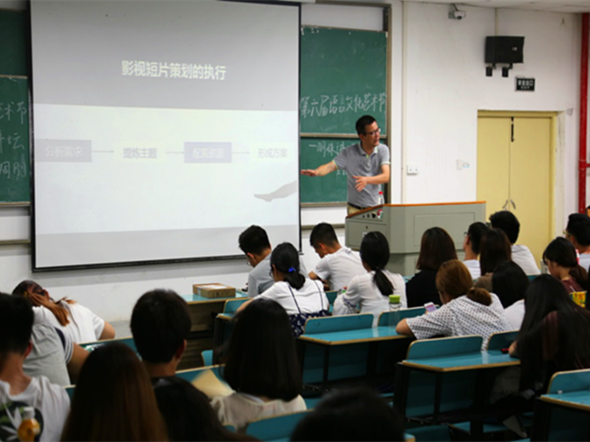 (通讯员 黄勤) 5月31日晚7:20,湖北万水千山文化发展有限公司执行董事、独立制片人、高级编辑周刚,以《影视短片策划中的目标和执行》为题,在逸夫楼C01开启明珠讲坛第21讲。全院各专业及微电影班共200余名同学聆听了本场讲座。