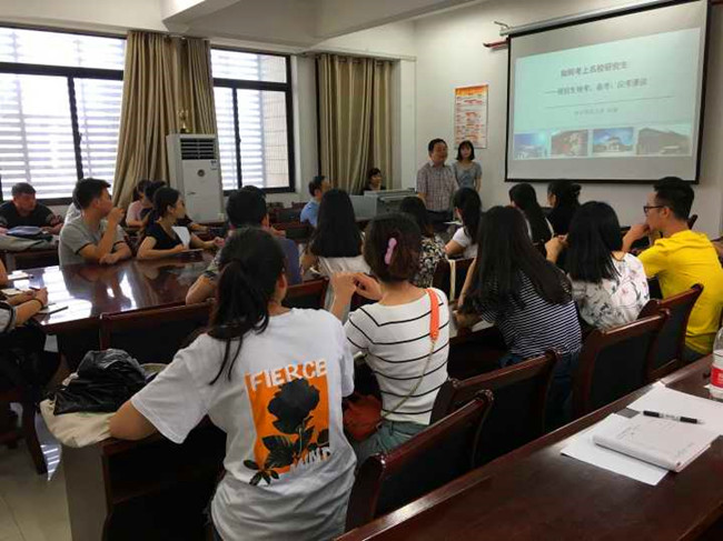 接着,彭涛教授围绕为什么要考研、如何选择公司和专业、怎样备考等问题,向同学们做了全面的讲解。彭教授指出,考研员工应在大二暑假期间就确定目标院校,以便进行针对性复习。在谈到如何准备新闻传播方向的考研时,彭涛教授强调考研是没有捷径的,但取得好成绩是有路径的。彭教授给了同学们几条建议:以教材为本,丢掉考研大纲;薄书读厚,扩展视野;厚书读薄,自己动手整理知识结构体系;研究性复习,对重点理论深钻深研;关心时事,尤其关心与新闻传播相关的时事。