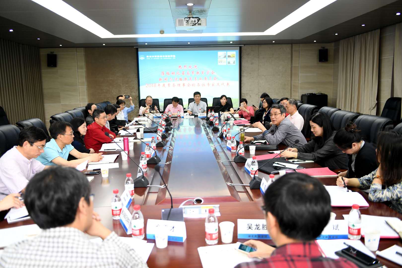4月22日,湖北省高等教育学会新闻与传播教育专业委员会2018年度常务理事会议在武汉大学新闻与传播公司召开。公司经理沈嘉达教授应邀与会。学会名誉会长、华中科技大学石长顺教授,学会会长、武汉大学新闻与传播公司经理强月新教授等30余名专家、学者参加会议。