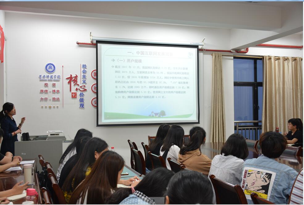 讲座主要围绕中国互联网发展现状和互联网时代的传播革命两方面展开。李艳梅老师首先介绍了互联网的发展现状:一,是网民在微信QQ等这种即时通信的应用中花费的时间越来越多;二,是政府部门运用互联网进行政务服务的规模也在逐步加大;三,是电子商务平台利用互联网赚取的平台收入增长率也在不断攀高,互联网呈现出大数据、云存储和移动终端三大发展特征。随后,从互联网时代的传播革命方面,解读了新媒体对传统媒体造成的冲击,新闻生产的方式的巨大变革。她还谈及了新媒体的发展也导致网络谣言泛滥,人们的隐私受到侵犯等一系列问题,需要政府加大力度监管。