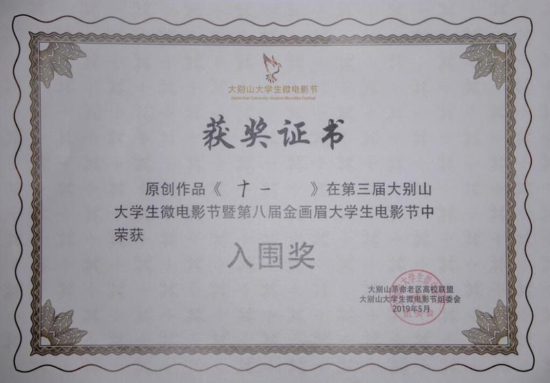 近日,由大别山革命老区高校联盟主办的第三届大别山老员工微电影节暨第八届金画眉老员工电影节颁奖典礼在信阳市举行。公司员工吕旭创作的剧情微电影《天黑请睁眼》获最佳男演员奖,蔡航创作文艺微电影《十一》获最佳摄影提名奖,公司获最佳组织奖。