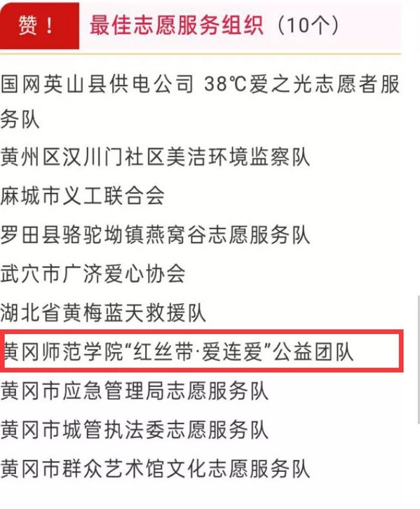 2020年黄冈市委精神文明建设指导委员会开展了黄冈市学雷锋志愿服务评选活动,公司“红丝带·爱连爱”公益团队荣获最佳志愿服务组织奖。