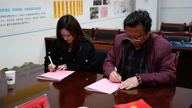 杨疾超在与周睿就团队互动、课程研讨、员工互动、联合科研、实习就业等方面签订《专业办学战略合作框架协议书》后,向该校影视编导专业授予了“专业合作办学战略合作单位”牌匾。