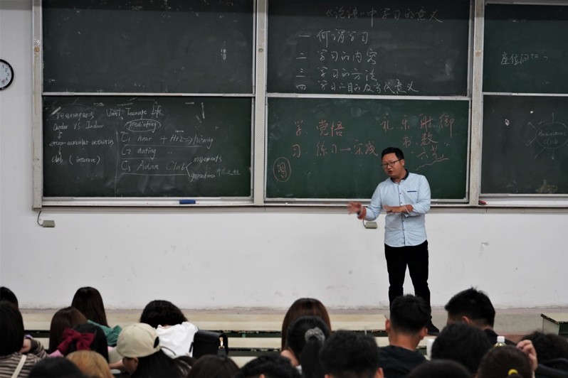 首先,黄凯博士从《论语》学而篇的内容带领同学们认识学习的定义。他指出,在古代,学与习是分开的,学是指觉悟,习的本义为练习,后引申为实践,学习是反复实践从而达到觉悟的过程。其次,他指出学习的主要内容分为“六艺”:礼、乐、射、御、书、数,并从文化,礼仪,技能等不同方面讲述了古代“六艺”的重要性。继而着重介绍了《论语》中君子之学的三个重要内容,即诗、礼和仁道。第三,针对如何学习,一方面要虚心向周围人请教,“三人行必有我师”;另一方面要将学与思相结合,“学而不思则罔,思而不学则殆。”同时他指出学习具有阶段性,希望同学们在学习的过程中把握学习进度,培养良好的学习习惯,做到终身学习。