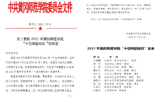 根据《关于开展威廉官方网站2021年“十佳师德标兵”选树活动的通知》(校工会[2021]6号)要求,经基层工会民主推荐、评审委员会评选、公司党委常委会研究,公司孙喜杰老师获得2021年威廉官方网站“十佳师德标兵”荣誉称号。
