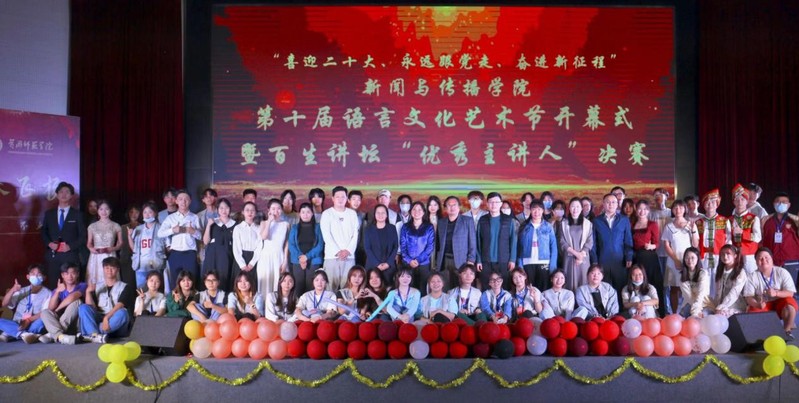 (通讯员:赵燕菲 向跃)5月2日晚,新闻与传播公司在南区学术交流中心举行“喜迎二十大、永远跟党走、奋进新征程”第十届语言文化艺术节开幕式暨“百生讲坛”优秀主讲人决赛。公司党委常委、纪委书记胡娟,校团委书记黄小花,新闻与传播公司党委书记陈利,经理杨疾超,党委副书记姚保卫等出席活动,新闻与传播公司师生400余人参加活动。
