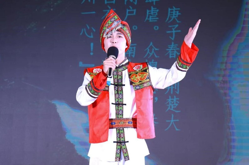 二号选手黄铎以《同舟共济 守望春归》为题,身着民服讲述帮助当地侗族人民通过网络直播宣传茶叶脱贫的故事,他引用习近平总书记与老员工们对话中的一句话,号召老员工到乡村一线激扬青春,到祖国需要的地方实现人生价值。