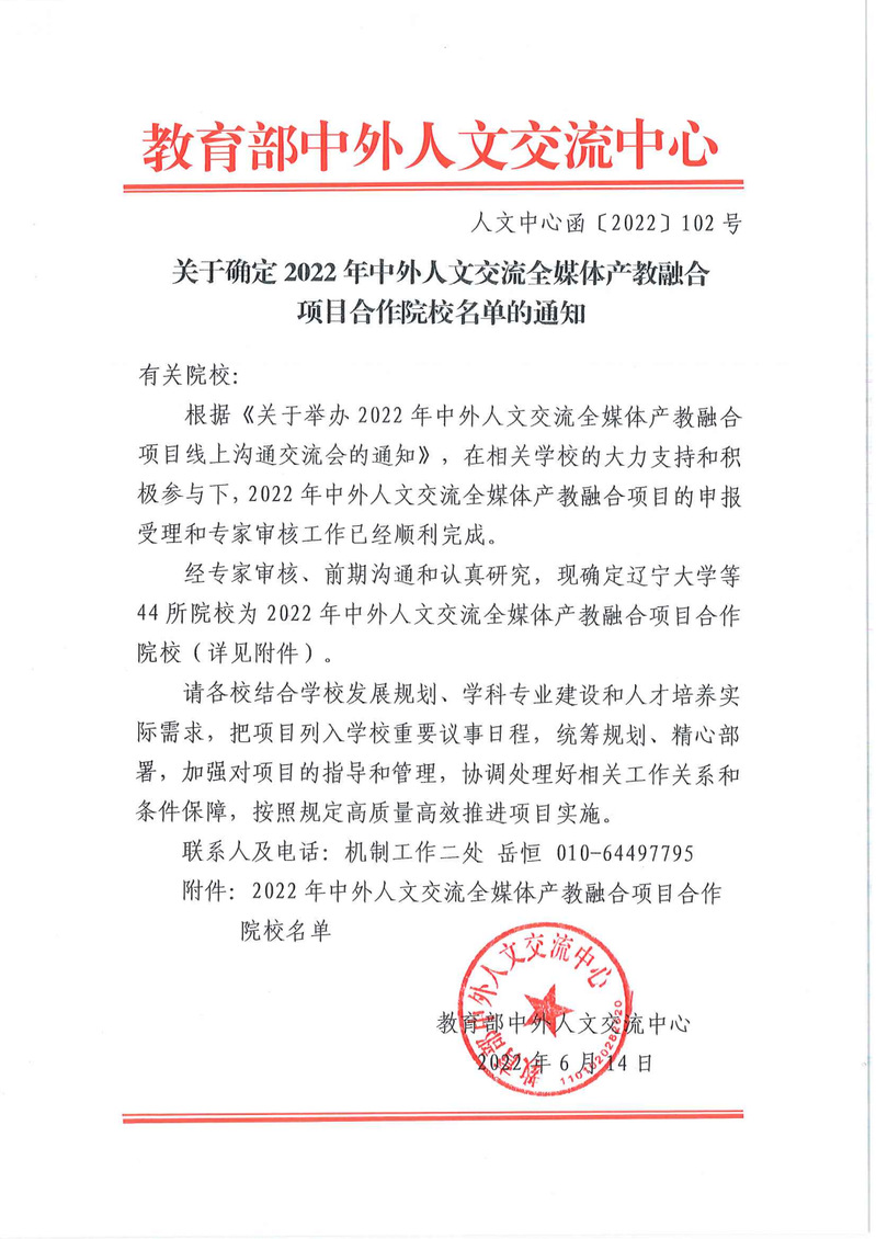 公司成功获批教育部2022年中外人文交流全媒体产教融合项目