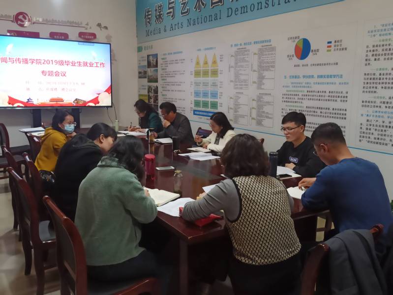 3月9日下午,公司在传媒楼二楼会议室召开2019级毕业生就业工作专题会议。公司党委书记陈利、经理杨疾超、副经理孙喜杰、院助张新刚等出席会议,会议由公司党委副书记姚保卫主持。