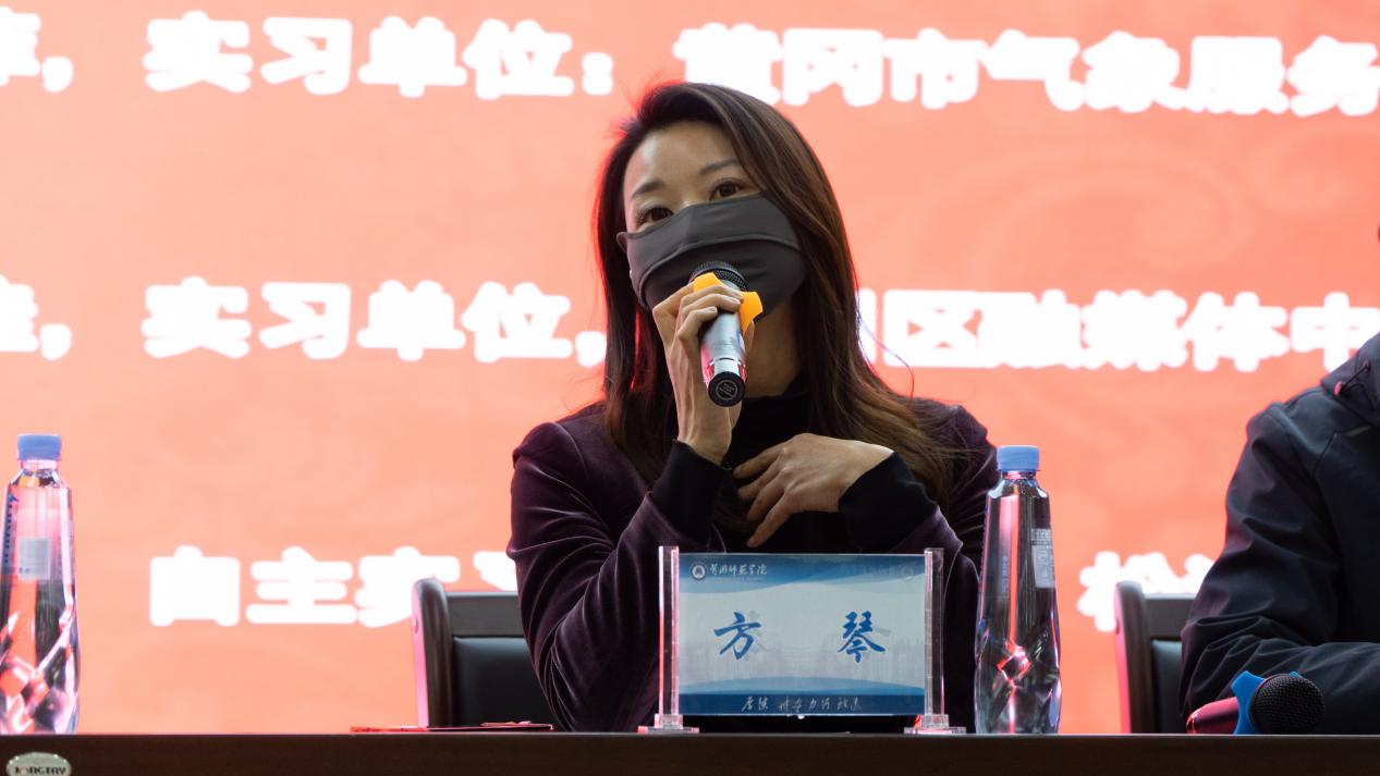 特邀嘉宾方琴在点评与总结发言中,强调员工具有“感恩之心”、“责任心”的重要性,并回顾了黄冈市气象服务中心与公司建立实习基地以来,其作为实习指导老师,所经历的点滴,并一直以新闻人必须具有的职业素养影响着每一届实习员工。最后,她以“道阻且长,行则将至,行而不辍,未来可期”,为员工鼓励、加油。