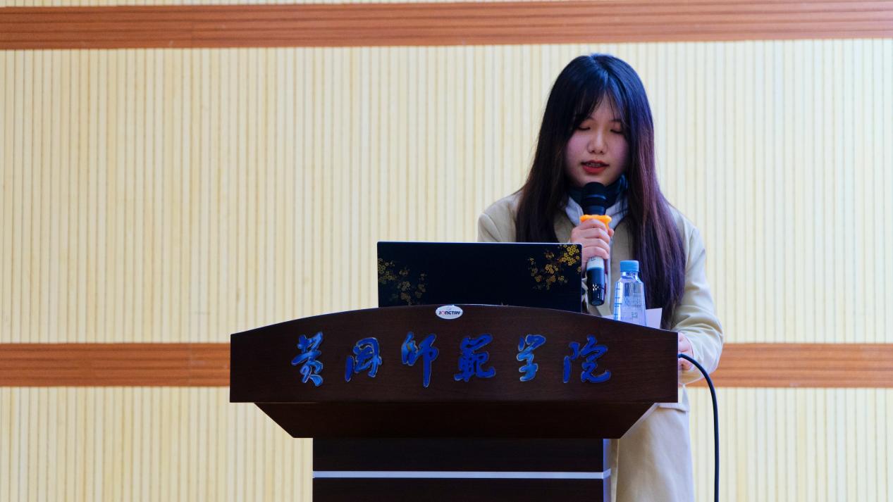随后,4名2019级优秀实习生代表依次上台进行了实习经验的分享与交流。他们结合自身的实习经历,从不同的角度出发,针对实习工作内容、实习经验感悟、专业能力提升、为人处事态度等多方面进行了经验的分享。播音班优秀实习生代表周文旭,以“响应党的号召,做有理想,敢担当,能吃苦,肯奋斗的新时代荆楚好青年”为主题,讲述了其在武穴市融媒体中心的实习经历,并强调作为一名播音员所具备的基本素质的重要性。期间刚刚入职武穴市融媒体中心播音员,公司2018级播音专业的张成强特为此次活动录制视频,为学弟学妹们鼓劲加油。编导班优秀实习生代表夏菲菲,以在黄冈市气象服务中心的不同视角,讲述了她在实习中经历的酸甜苦辣百般滋味并鼓励大家提前做好知识和心理的双重准备,并始终要以“厚德、博学、力行、致远”的黄师校训鼓励自己,用实际行动为社会创造更多价值。编导班优秀实习生代表范思佳,以在黄州区融媒体中心的工作感悟为切入,讲述了她在四个月的实习中,编辑的87篇微信公众号、做的17个视频、发布的两篇新闻稿过程中的点点滴滴,并分享了从青涩到成熟蜕变的历程。广电班优秀实习生代表曾宝仪分享了其自主实习中,在湖北省松滋市融媒体中心作为实习记者的感受,他以新闻工作流程为切入,强调了“态度端正,待人诚恳”的重要性。