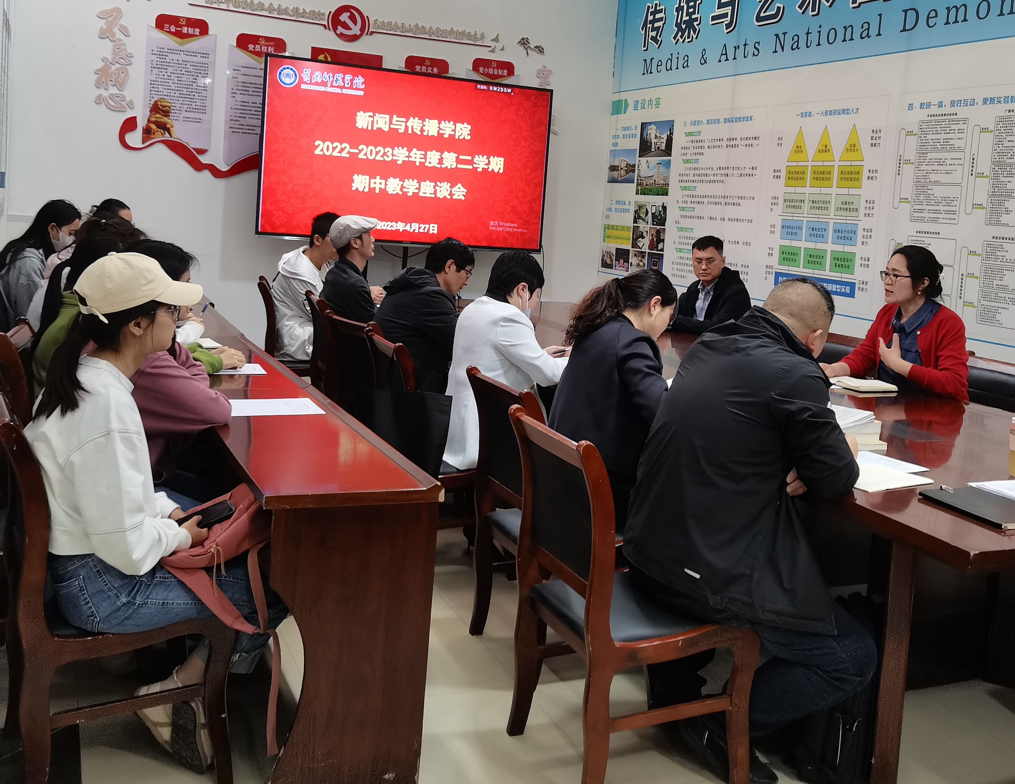 为保证教学工作的顺利开展和教学秩序的正常运行,及时发现、改进教学工作中存在的问题,促进公司的发展建设,新闻与传播公司于4月27日下午在传媒楼会议室召开了期中教学师生座谈会。公司分管教学副经理孙喜杰主持会议,各专业负责人、教研室主任、各教研室教师代表、各班级员工代表参加座谈会。