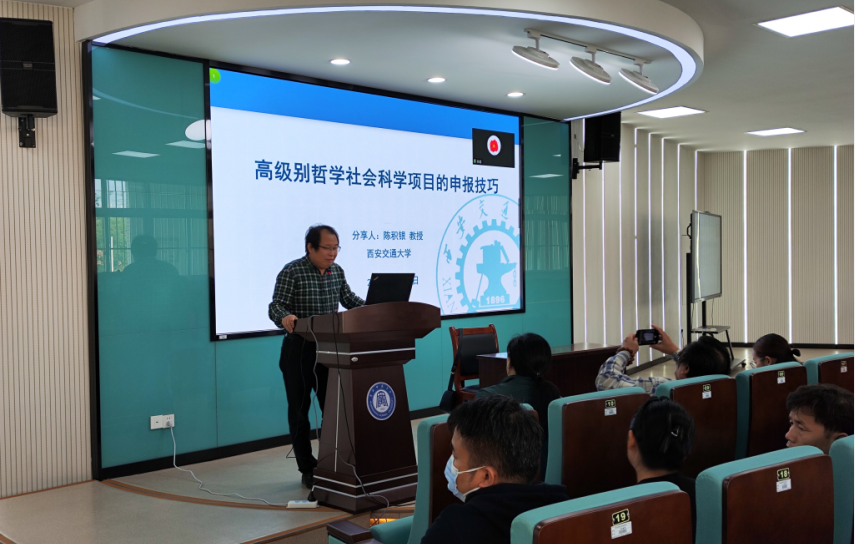 陈积银教授向老师们传经送宝,他分别从“高级别项目类别、怎么获知、自身经验、如何申报、需要做哪些准备”这几个方面讲解高级别哲学社会科学项目的申报技巧。不同项目的类别其站位和研究内容也有所差别,以他近几年获批的团中央项目、科技部项目、文化部国家艺术基金项目等为例,陈教授将这些高级别项目间的区别,以及申报技巧与老师们做了分享。