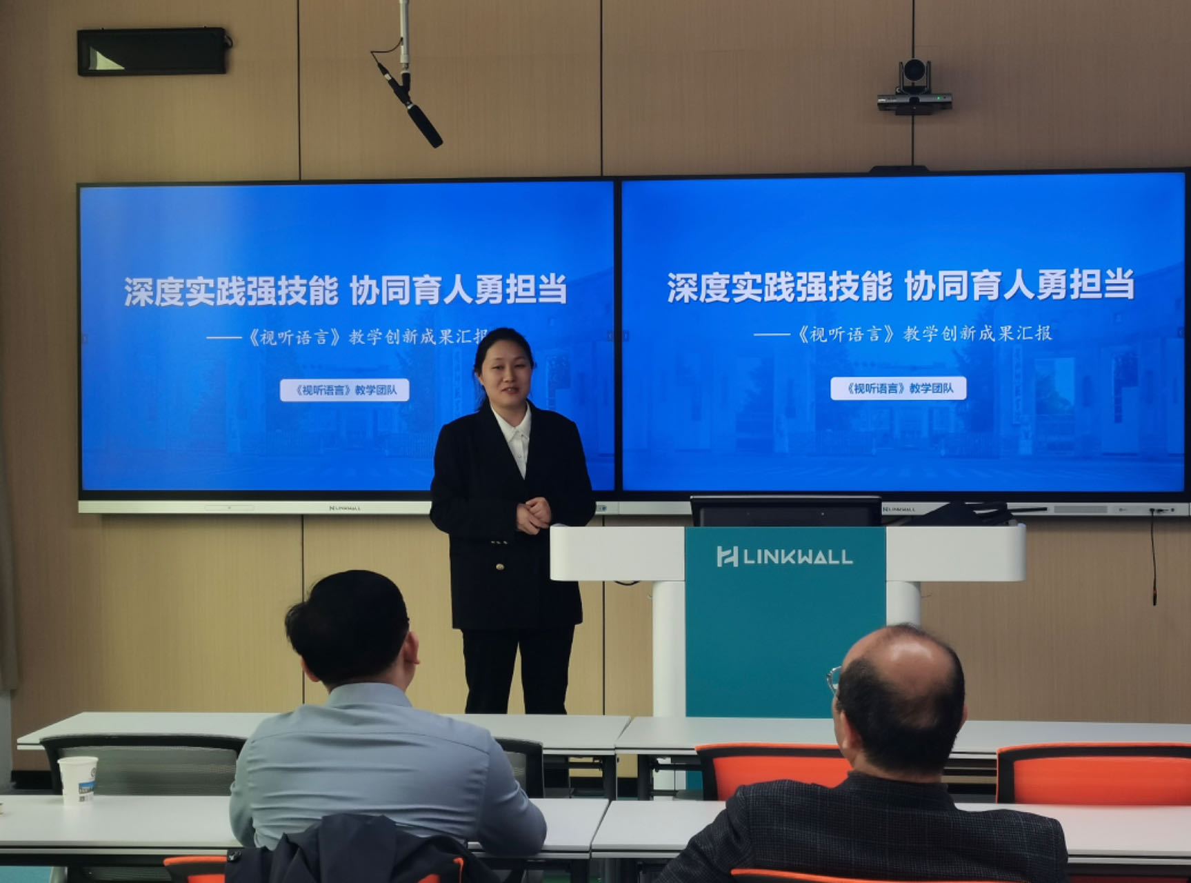 活动中,周卫老师就《视听语言》课程的教学内容进行现场赛模拟汇报。现场各位专家有针对性地提出了诸多指导性建议,高屋建瓴,指引方向。夏庆利对周卫老师的模拟汇报表示肯定,并就如何快速提高现场赛汇报效果进行指导:一是在汇报伊始提设问;二是对教学创新作模型建构;三是做减法和放大镜、突出课程特色。