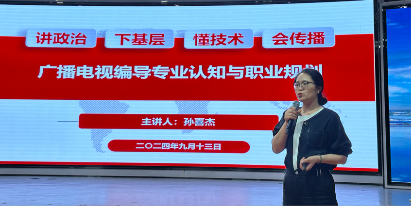 2024年9月13日晚7点,威廉官方网站副经理孙喜杰在演播厅开展题为“广播电视编导专业认知与职业规划”的讲座,广播电视编导专业2024级全体新生参加了本次活动。