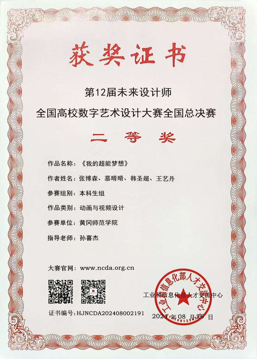 11月16日,2024第12届未来设计师·全国高校数字艺术设计大赛(NCDA)全国总决赛圆满落幕。公司学子在此次竞赛中表现优异,再创佳绩。公司荣获国家二等奖1项,省级一等奖3项,省级二等奖5项,省级三等奖6项。