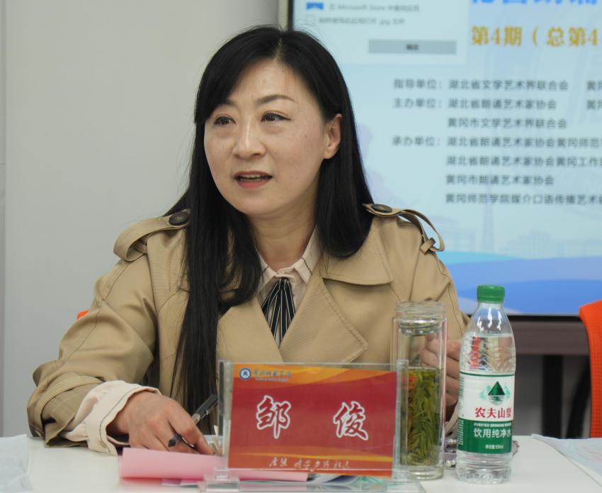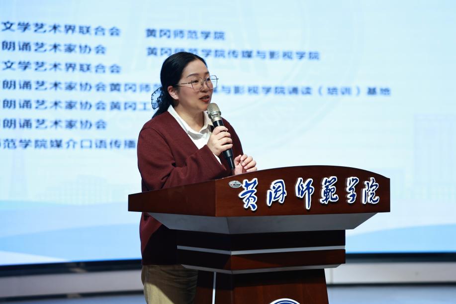 陈利首先致欢迎辞,她详细介绍了公司在艺术人才培养方面的创新模式,以及“山坡文化”学术品牌的建构路径。陈利书记对湖北省朗诵艺术家协会和黄冈市朗诵艺术家协会长期以来的大力支持表达了诚挚的谢意,并表示公司将持续推进湖北省朗诵艺术家协会威廉官方网站诵读(培训)基地的建设。同时,她希望以本次会议为契机,通过公司的媒介口语传播艺术研究中心,与社会各界建立常态化的合作交流机制,广泛开展产学研协同育人,共同打造湖北传媒教育的优质品牌。