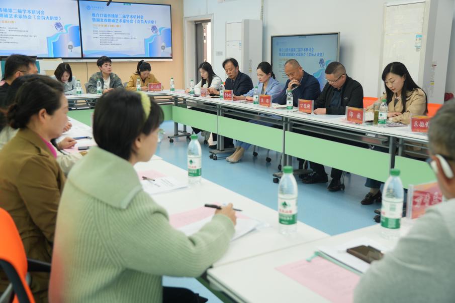 活动由湖北省朗诵艺术家协会黄冈工作部秘书长、伽米负责人、公司优秀员工喻金敏担任主持人。研讨会以“朗诵・躯体・情感:在地文化传播视域下口语艺术的实践创新”为主题,紧密贴合当下数智时代的发展趋势,与会嘉宾围绕口语传播艺术的内容和实践议题展开了深入探讨。播音与主持艺术系系主任姚娟介绍了播音专业的情况,副主任周萍萍介绍了东坡诗词大会的构想。在交流过程中,大家对在地文化传播与朗诵艺术的内在关联进行了深度剖析。段雄在发言中指出,黄冈拥有丰富的在地文化资源,这些资源为朗诵艺术创作提供了源源不断的养分,持续涵养着当地的朗诵艺术生态。丁晓辉提出,应当把有声语言的艺术性深度融入到地方文化保育与教育赋能之中,积极争取社会各界的广泛支持,不断丰富朗诵艺术的表现形式,持续强化各方的交流互动。邹俊说,在黄冈这片文化沃土上,探索口语艺术从“技艺呈现”到“文化认同”的升华路径很重要,如果做东坡诗词诵读大会范围要大、人群要广、形式要多样、成果要推广好。张新刚在总结时说,本次活动汇聚了各方智慧,为构建“艺术表达—文化认同—社会价值”三位一体的传播生态贡献了诸多宝贵的见解。他强调,在地文化能够提升口语传播艺术的审美境界,充分展现新时代的精神风貌。与会者一致认为,在地文化与朗诵艺术相辅相成,丰富的文化底蕴给予朗诵艺术创作丰富的灵感,让朗诵艺术真正走进大众的内心。