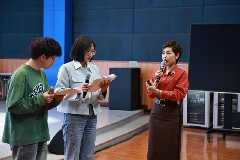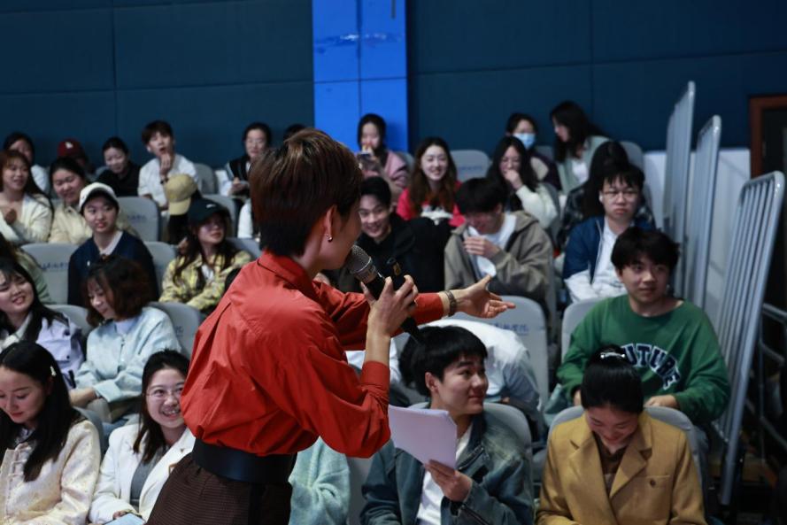 在交流互动环节,樊老师与朗诵艺术爱好者、师生代表积极互动,就作品创作主旨的把握、人物内心世界的感触和审美意境的建构等话题展开了热烈讨论。公司24级播音专业陶诗涵等现场演绎的朗诵《以你为镜》得到了专家、与会来宾等的肯定。整个讲座现场气氛活跃,大家在交流中获得了真挚而深刻的艺术体验。