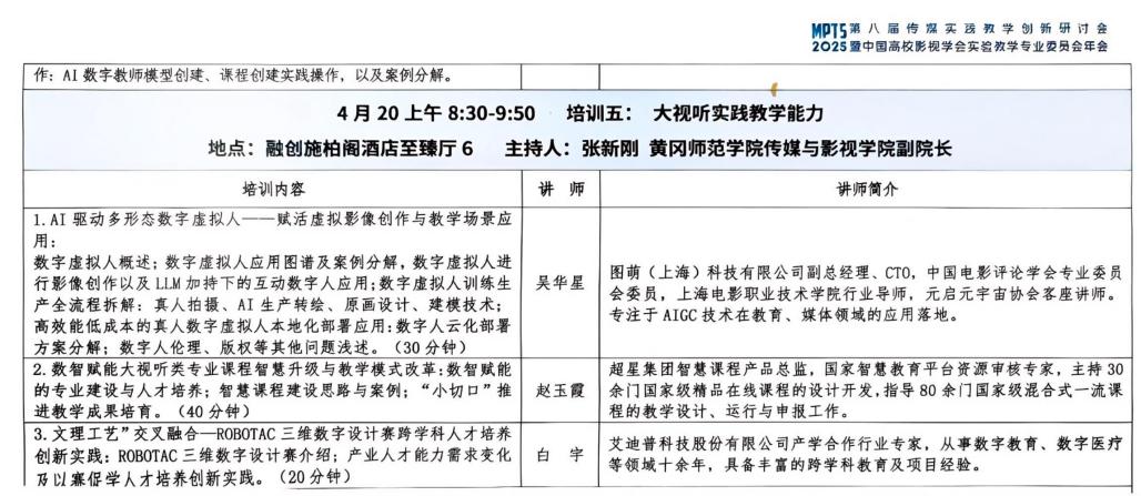 4月18日至20日,以“视通千行,智践万业——创新大视听实践教员工态”为主题的第八届大视听实践教学创新研讨会暨中国高校影视学会实验教学专业委员会2025年年会在青岛隆重举行。本次大会汇聚了来自全国300多所高校、40余家企业共计800多名专家学者,聚焦人工智能时代大视听实践教学的创新路径与未来图景展开深度研讨。公司副经理、中国影视协会实验教学专业委员会常务理事张新刚,以及公司传媒与艺术国家级实验教学示范中心办公室主任、公司实验办主任陈海棠代表公司出席此次会议,并分享了公司在促进大视听实践教学创新发展方面的见解和经验,与参会专家深入探讨大视听实践教学创新发展的路径。