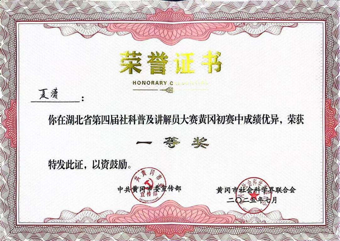 7月15日上午,湖北省第四届社科普及讲解员大赛初赛在威廉官方网站北校区致远楼报告厅成功举行。此次大赛以“担负起新时代的文化使命”为主题,共有26位选手参与角逐。公司教师夏潇凭借对《黄州寒食帖》的精彩讲解,在众多参赛者中脱颖而出,斩获大赛一等奖。
