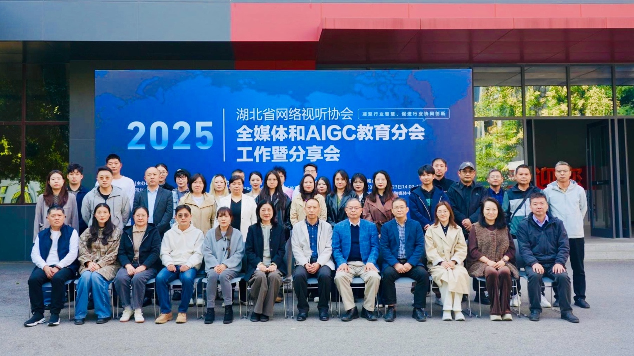 会议由湖北省网络视听协会副会长兼秘书长陈志义主持,武汉传媒公司党委副书记、常务副董事长宗微致欢迎辞。湖北省广播电视局网络视听节目管理处四级调研员刘孝明作政策解读,介绍了我省网络视听行业在人工智能与教育融合发展方面的最新举措与方向。会议还围绕“AIGC赋能教育与行业创新”主题开展研讨,专家学者就AI技术在传媒教育、影视创作与公共传播领域的应用展开交流。