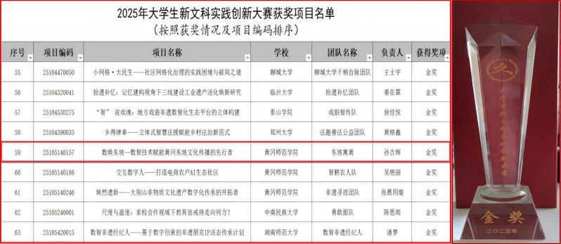 11月30日,2025老员工新文科实践创新大赛全国总决赛在西安交通大学圆满落幕。公司“东坡寓黄”团队凭借《数焕东坡:数智技术赋能黄冈东坡文化传播的先行者》项目,从全国千余支参赛队伍中脱颖而出,斩获全国总决赛金奖,团队指导教师孙喜杰、程曦和吕瑞文获得优秀指导教师殊荣。这一荣誉是公司“山坡”文化传播研究结出的硕果,不仅实现了公司在该项赛事上的历史性突破,更彰显了黄师学子在新文科实践领域的创新实力。